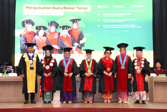 Rektor Universitas Sumatera Utara (USU), Prof. Dr. Muryanto Amin, S.Sos., M.Si, memimpin langsung Upacara Pengukuhan lima Guru Besar Tetap USU, pada Rabu (6/12/2023) kemarin. Pengukuhan guru besar ini, berlangsung di Gelanggang Mahasiswa USU.