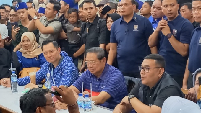 Di akhir safari politik di Sumatera Utara, Ketua Umum Partai Demokrat, Agus Harimurti Yudhoyono (AHY) dan Presiden ke-6 RI, Bambang Susilo Yudhoyono (AHY) menggelar silaturahim dengan para ulama, di Sumatera Utara, yang berlangsung di Hotel Adi Mulia, Kota Medan, Kamis (28/12/2023) pagi.